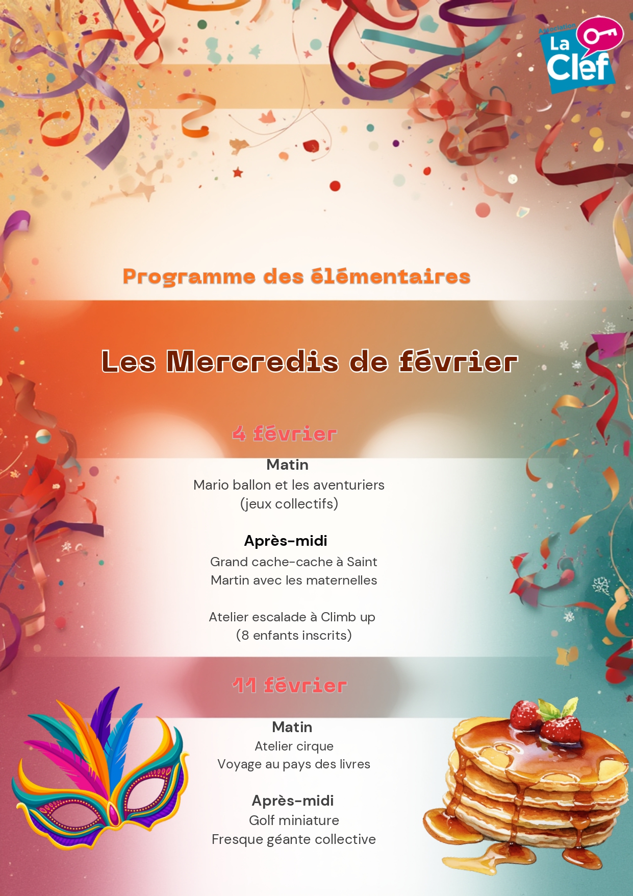 Foyer Saint-Georges, 14 Grand-Rue, 68870 Bartenheim Les vacances d’hiver approchent et nous serons ouverts du 16 au 27 février. Au programme...