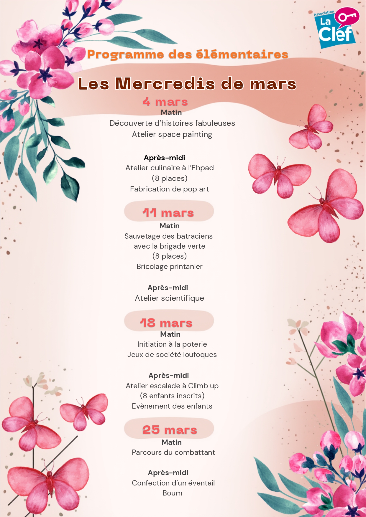Pour le mois de mars Programme des mercredis